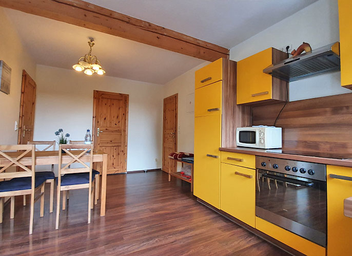 Sie wurde als letzte unserer Ferienwohnungen im Jahr 2009 gebaut und ist mit modernen Massivholzmöbeln ausgestattet.