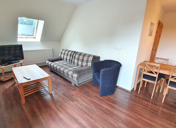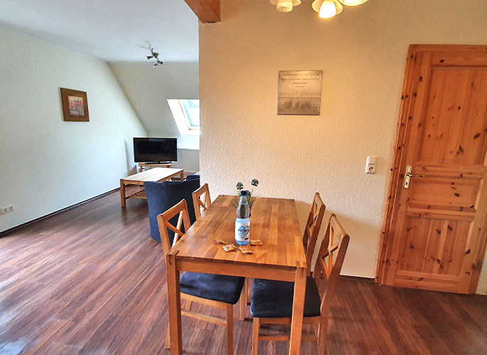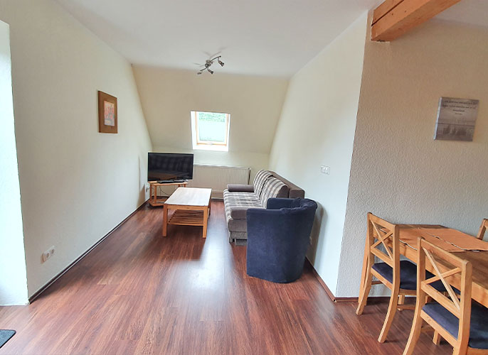 Die Wohnung Aue ist ca. 50qm groß und bietet Platz bis 4 Personen.